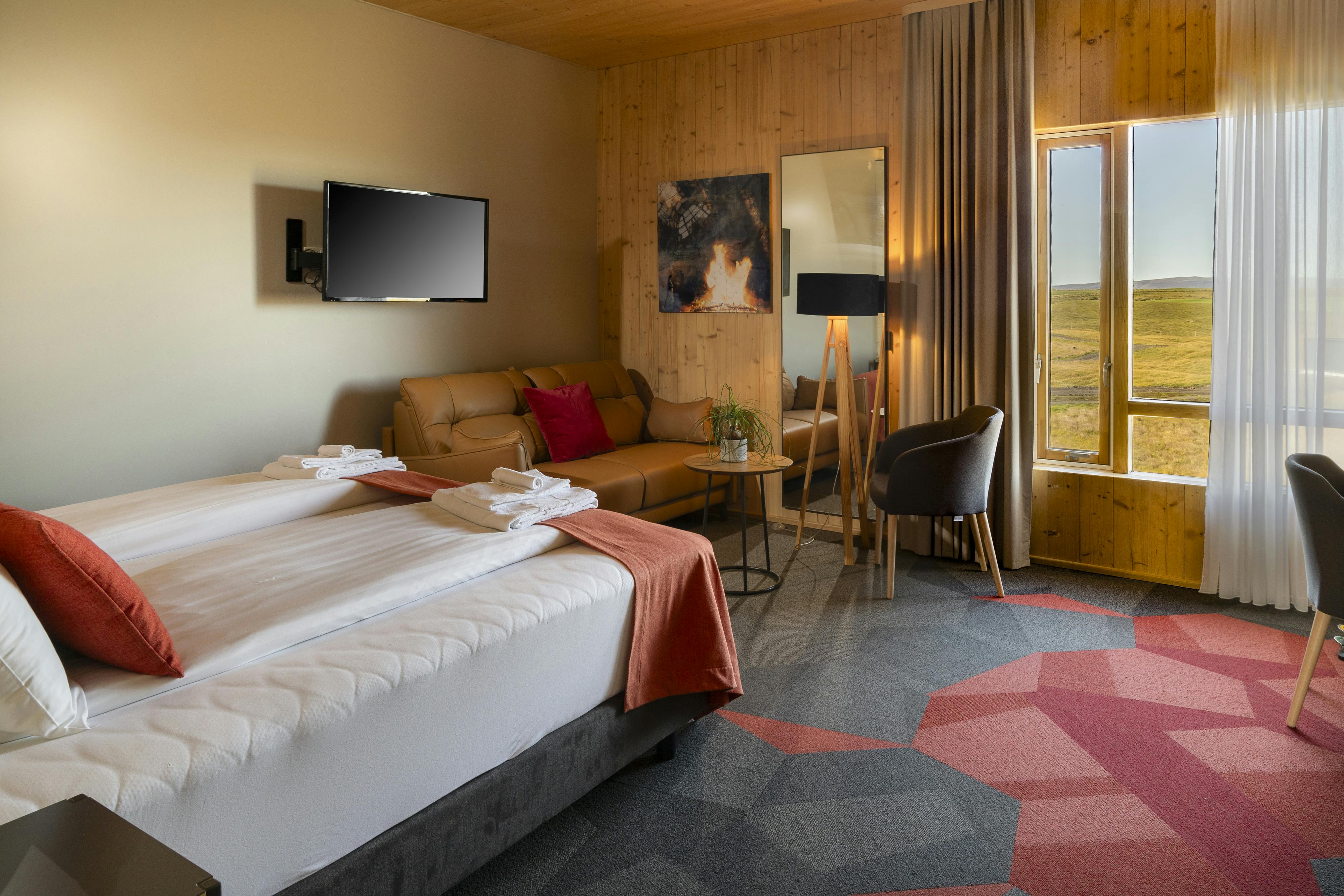 Landhotel is where you can combine luxury stay with adventurous explorations in South Iceland. The hotel has 69 spacious and well-appointed rooms, nice restaurant, SPA with saunas and outside glass dome jacuzzi, GYM and playroom. The hotel is only an hour away from Reykjavik and throughout the hotel you have picturesque views of the surrounding nature.