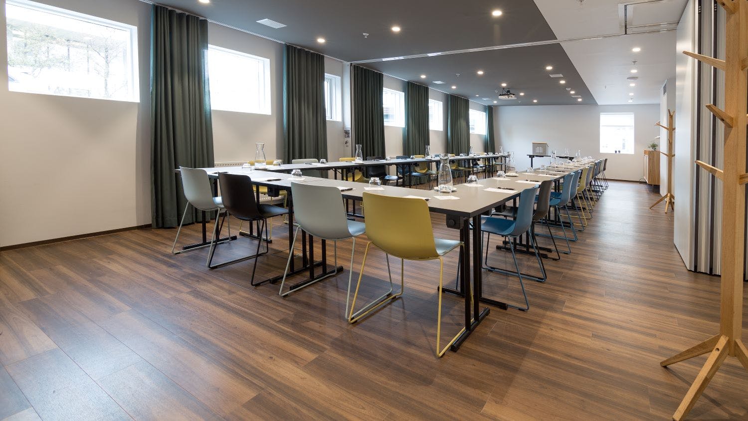 Fosshotel Húsavík offers 6 modern conference and meeting venues for all types of events. The flagship, Skjálfandi venue, offers 230 square meters of space and feautres a multi-color LED lighting in the ceiling, with a special Aurora Borealis lighting feature. You can inquire about all our venues here at our website.